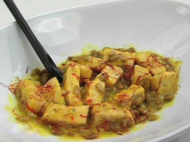 Вкусное блюдо для поклонников рыбы.Состав:рыба-меч — 200 гр;семечки подсолнуха — 2 столовых ложки;мука — 1 столовая ложка;рыбный бульон с шафраном — 50 гр;чеснок — 1 зубчик;оливковое масло, сухой имбирь, черный перец, соль с травами — по вкусу. Язык: Русский Длительность материала: 00:01:06