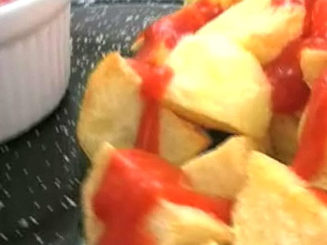 Рецепт картофеля с томатным соусом.Состав: картофель — 5 клубней;томатный соус, мука, соль, масло, уксус, табаско, перец. Язык: Русский